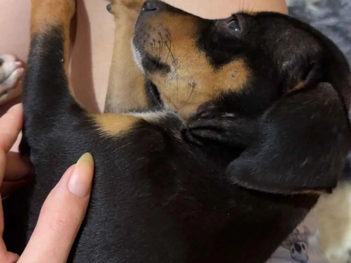 Conheça o Sem Nome, um adorável vira-lata macho com menos de 2 meses. Ele é dócil, brincalhão e carinhoso. Dê uma nova chance a esse puppy em Rondonópolis!