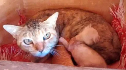 Estou com uma gata e dois filhotes em casa que NÃO é minha. E falando com os vizinhos não é daqui. Quem quiser adotar por favor me contatar.