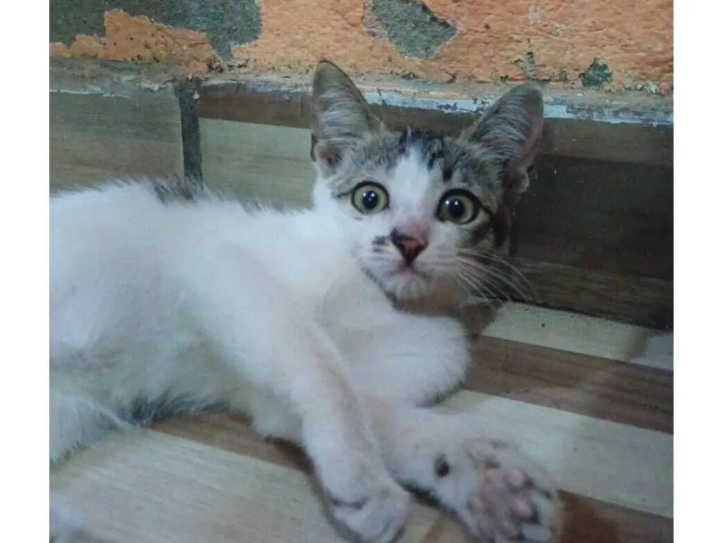 Adote a Mel, uma gatinha dócil e carinhosa de 2 a 6 meses, que precisa de um lar seguro. Faça a diferença na vida dela com uma adoção responsável.