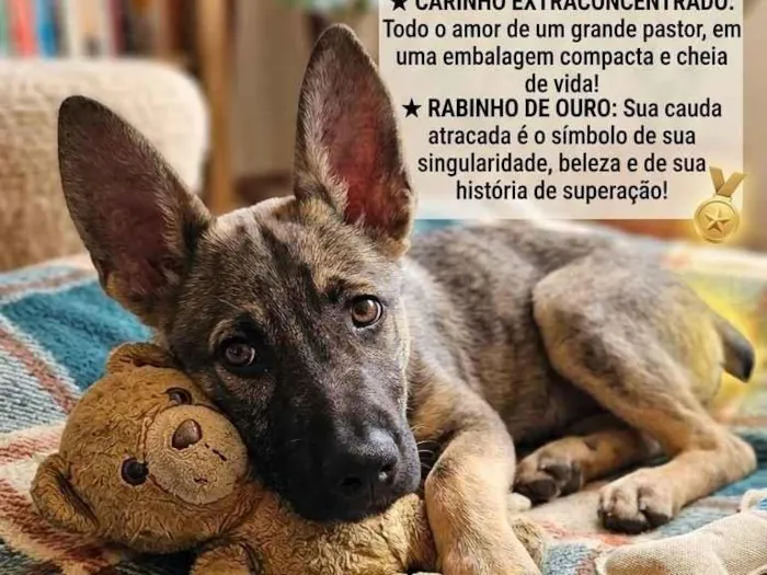 Esse filhote lindo e de orelhas atentas tem uma característica muito especial que o torna único: um rabinho curtinho e super charmoso. E quer saber qual é a maior vantagem desse "rabinho de ouro"? Ele é a prova de que a beleza está naquilo que nos faz diferentes! Além de ser um charme absoluto, o rabinho curto o torna muito mais ágil nas brincadeiras e super prático (nada de derrubar as coisas da mesa de centro quando ele estiver feliz balançando o bumbum!).