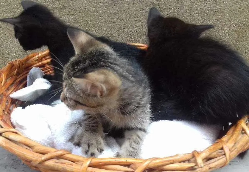 Adote Nahal, Tigresa e Wend, filhotes de gata. 3 fêmeas: 1 malhada e 2 pretas. Mestiças, entre 2 a 6 meses. Localização: Parauapebas/PA.