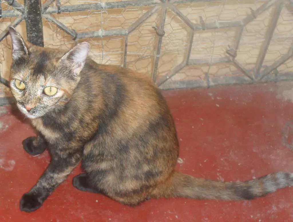 Gata castrada e vermifugada, mansa e acostumada com ambientes internos, disponível para adoção com três filhotes. Adoção por motivos financeiros.