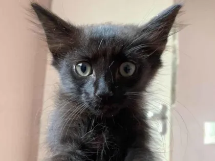 Adote a Viúva Negra, um gato SRD de 2 a 6 meses. Dócil, brincalhão e sociável, ele fará a alegria da sua casa. Dê uma chance a ele!