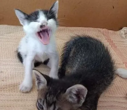 Resgatei 5 gatinhos filhotes depois de uma noite chuvosa, fiquei com muita pena deles, estavam numa caixa de papelão ensopados, miando muito. Estão aqui na estação
