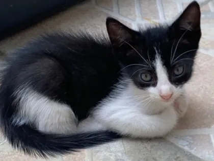 Estamos procurando um lar para esse filhotinho macho, um gato SRD (vira-lata) com pelagem branca e preta. Ele é sociável, calmo e docil. Ele já está se alimentando com ração e utiliza a caixinha de areia direitinho. Estou doando ele pois nao posso ficar, é filhote da minha gata!