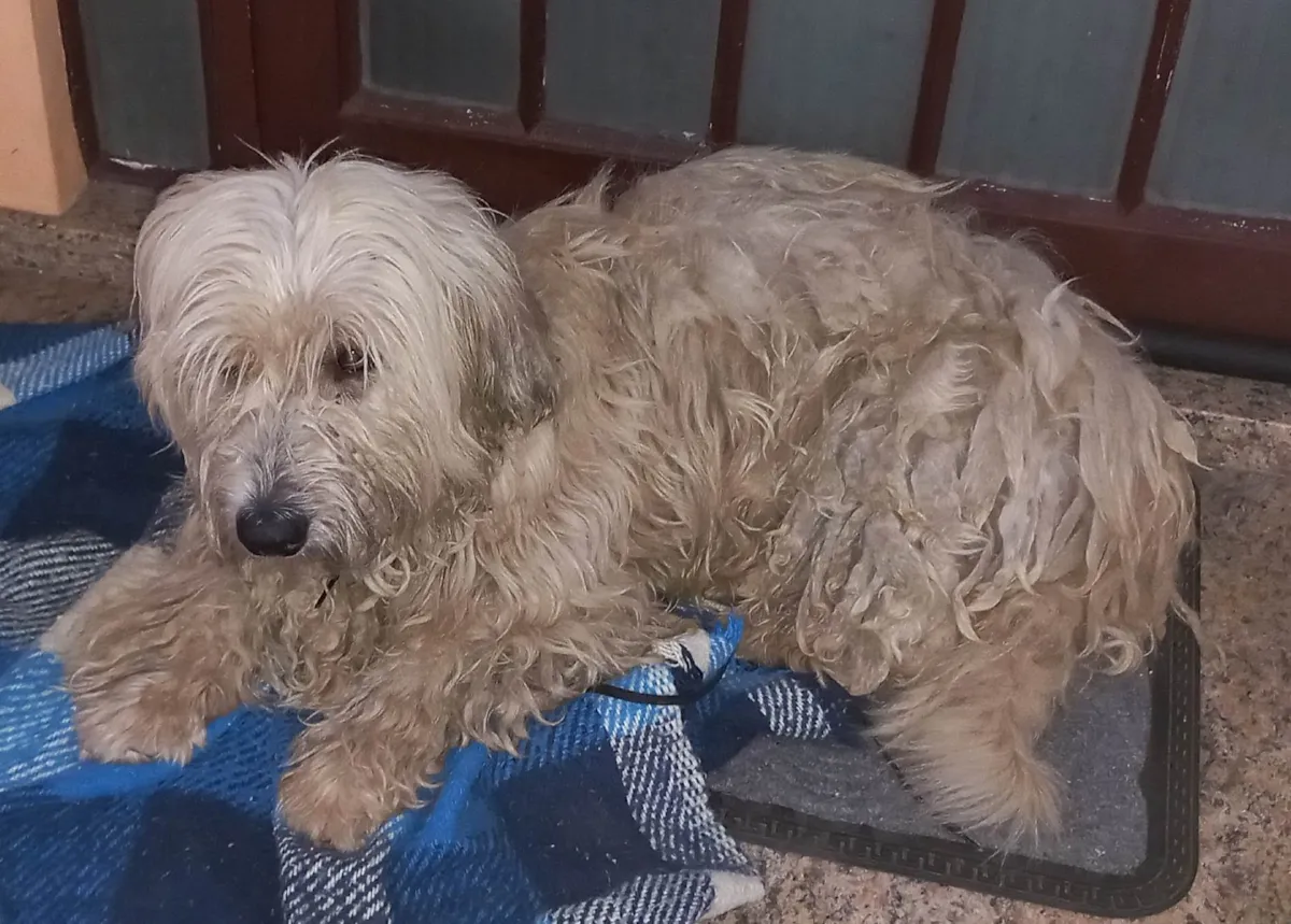 Cachorra de porte médio, ativa e carinhosa, se adapta facilmente. Cuida da casa, gosta de ficar dentro e no quintal. Aceita outros cães e está tosada.