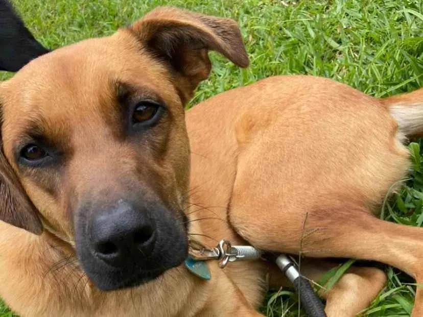 Adoção de Dengo, cão SRD de 1 ano, vacinado e castrado. Doçura em forma de animal, ótimo convívio com crianças e outros pets. Adote um amigo!