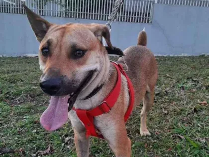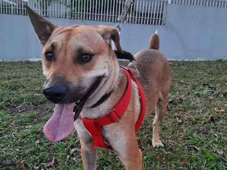 Sou um legítimo Vira Latas Caramelo da Fuça Preta e tenho mais ou menos um ano de idade, sou bem filhotão! Tenho porte médio e peso 20 quilos, e não vou crescer mais do que isso! Sou um filhotão bem ativo, gosto muito de brincar e de passear! Me dou bem com outros cachorros, onde estou hoje tem duas cachorrinhas bem idosas e pequenininhas, eu me dou muito bem com elas, mas não posso morar aqui pra sempre!