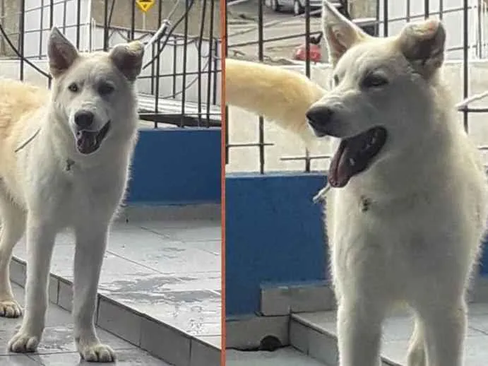 Pai Husky siberiano e mãe Pastora Suíça Branca
