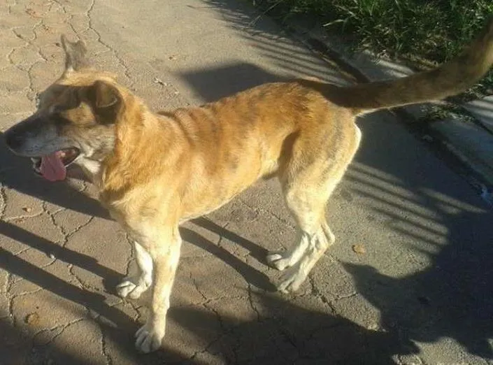 Tigre (o listrado) é de porte grande, tbm ainda não é castrado e sera assim que aparecer adotante, é brincalhão e protetor, otimo cão de guarda, bem territorialista, não se da com outros cães.