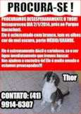 Sou de Curitiba, e precisava de ajuda! Por favor! Por um descuido, minha mãe deixou o portão aberto, e desde as 18 horas do dia 2, e só fomos perceber quando eu cheguei de viagem as 20 horas, e desde então ele está perdido. Não encontramos ele de forma alguma! Por favor se você o encontrar, nos informe, ele é muito dócil e responde pelo nome de Thor!
