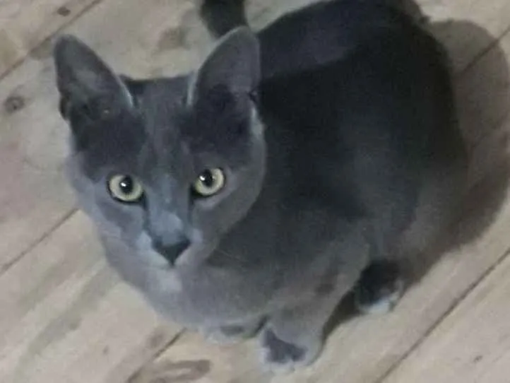 Gato cinza grafite com olhos amarelos desapareceu em Pontal do Paraná. Desaparecimento ocorreu em 31/10 após chegar de Curitiba. Recompensa 100,00.