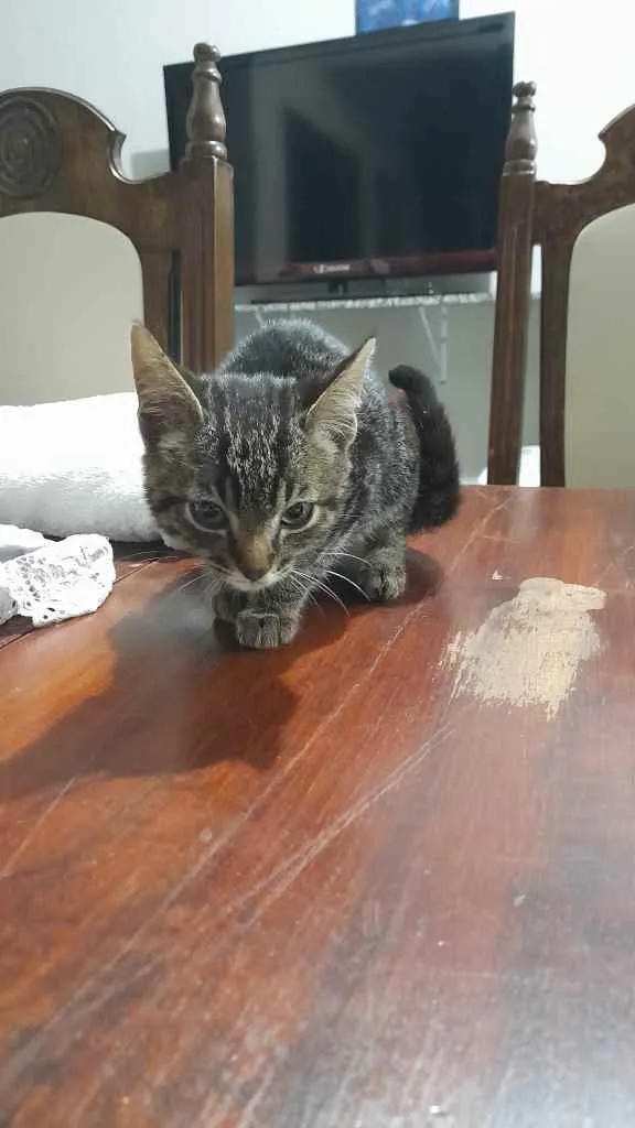 Olá pessoal! estou doando esse gatinho "macho", resgatei ele da rua, deve ter 2 meses de vida, já come ração e é muito carinhoso. Não posso ficar com ele pois a minha gata não aceitou muito bem o gatinho ??.