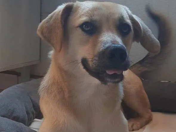 Esta é a Meg, uma adorável cadelinha SRD/Vira-Lata de 4 anos, com uma pelagem amarelo suave que é puro charme! Com porte médio, ela é a companhia perfeita para todos os momentos. A Meg é vacinada, garantindo que você terá a saúde e alegria dela sempre ao seu lado.