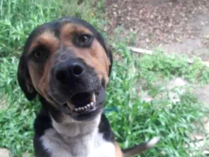É uma cachorro de porte grande e muito bonito e dócil. Mas, gosta de ficar na rua. Então sempre está fugindo.