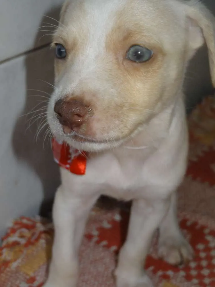 Adote a Princesa, uma cadelinha encantadora, branquinha com olhos azuis. Ela busca um lar cheio de amor e cuidados. Dê uma chance a esse doce ser!