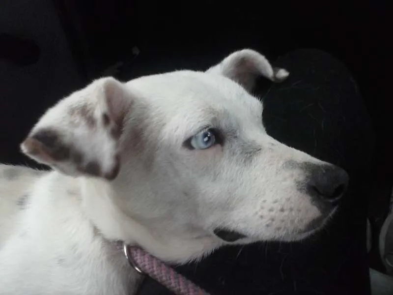 Adote Diamante, um adorável SRD de 2 anos, mix de pit bull e dálmata. Ele é dócil, cheio de energia e espera por você em Barra Mansa/RJ.