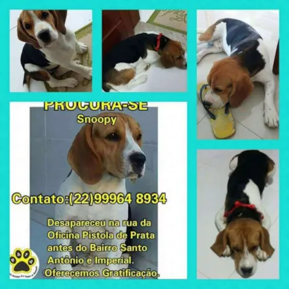 Cachorro Beagle Snoopy desaparecido em Campos/RJ, ajude!