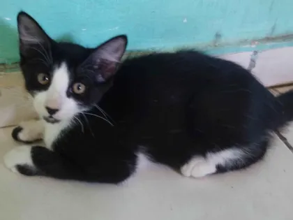 Adote Frajola, um gatinho calmo e dócil, amado por brincar e receber carinho. Ele é perfeito para famílias com crianças. Procura um lar cheio de amor!