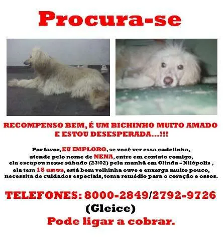 Ajude a reencontrar Nena, uma adorável cadela fêmea desaparecida em Nilópolis, nas redondezas de Olinda. Sua ajuda pode fazer a diferença!