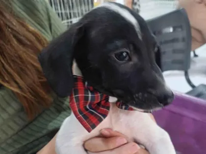 Adote Tony, um adorável cão SRD de pelagem branca e preta. Com temperamento dócil e sociável, ele é o companheiro perfeito para sua família.