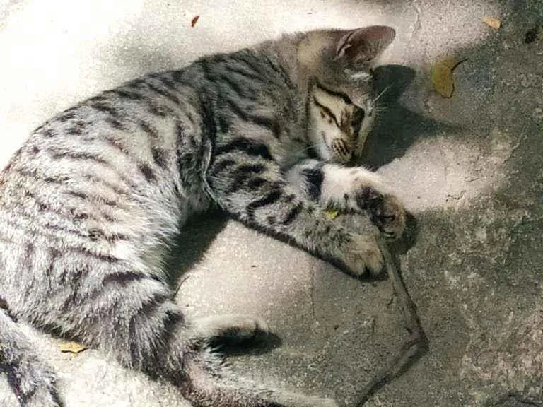 Linda gatinha, rajadinha.filhote mansinha, mais ou menos 2 meses. Fêmea.