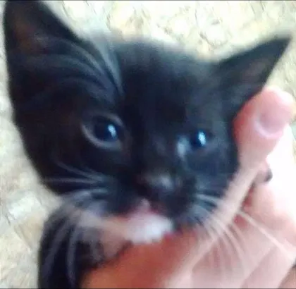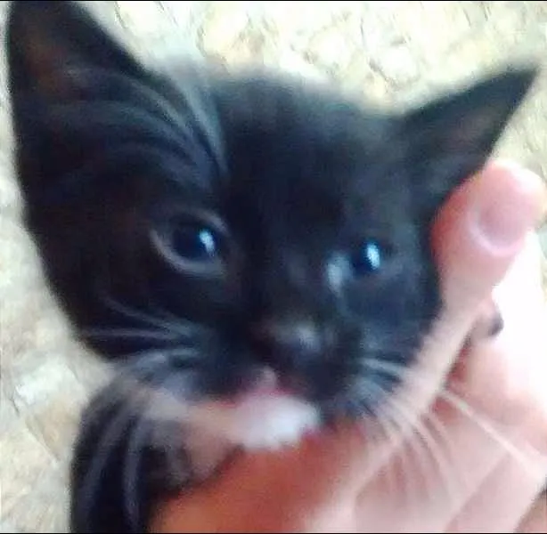 Ele é muito, muito carinhoso e brincalhão. Tem olhos claros, pelagem preta com patinhas, barriga, pescoço, bigodes e sobrancelhas brancas.