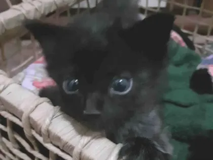 Gatinho preto cheio de vida e personalidade. É muito brincalhão e animado. Foi abandonado em uma caixa com seus outros 3 irmãos e buscamos um lar aconchegante e seguro para ele.