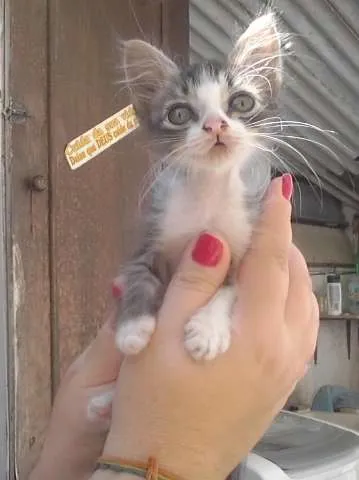 Sou o gatinho mais fofo do mundo...a dona da minha mãe se apaixonou por mim..mas infelizmente ela não pode ficar comigo...fui o menor dos meus irmãos...nasci com a boquinha meio abertinha em cima..mas nada q me prejudique..sou muito amado..pra ser adotado tem q ser uma pessoa q queira me amar muuuuito mais!!!!!