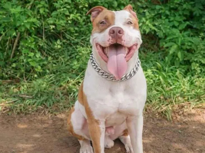 Conheça Arock, um dócil Pit Bull de 5 anos, brincalhão e sociável. Ele busca um lar com quintal em Nova Iguaçu. Adote esse amigo fiel e alegre!