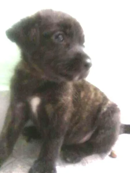 Esse é o Bob, eu o encontrei sozinho na rua torrando no sol. Ele tem 1 mês, é muito bonzinho só quer saber de brincar e dormir, pra ele tudo é brincadeira. Já dei a 1ª dose do vermífugo (a 2ª dose será dada no dia 15/01). Ele está super saudável e já come ração de filhote. Infelizmente não tenho ficar com ele pois meu cão é muito ciumento e também tenho outra cachorra que também resgatei da rua.