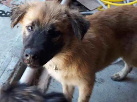 Cachorro amarelo, com fucinho e cauda pretos. Filhote, foi achado com uma coleira de onça. Encontrei-o perto do colégio Ciep Brizolão 358 Alberto Pasqualini, Bairro da Luz - Nova Iguaçu, na manhã de segunda-feira.