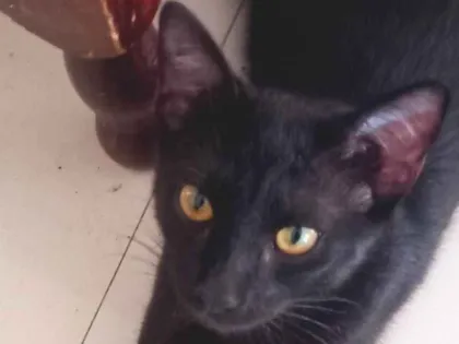 Adoção urgente do gato Belial, macho SRD de 7 a 11 meses. Precisa de cuidados especiais e um lar com quintal. Ele é brincalhão e arisco. Ajude!