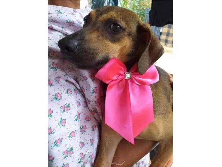 Cacau tem cerca de 3 meses e deverá ficar com porte médio. Cacau foi resgatada junto com sua mãezinha em um canteiro de obras em Bonsucesso. Foi vermifugada,
