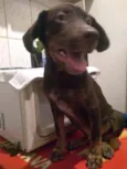 Doação de cachorro vira-lata com 8 meses, carinhoso e brincalhão. Olhos azuis, marrom escuro, porte médio. Castração coberta. Estou em Realengo, entrego na região.