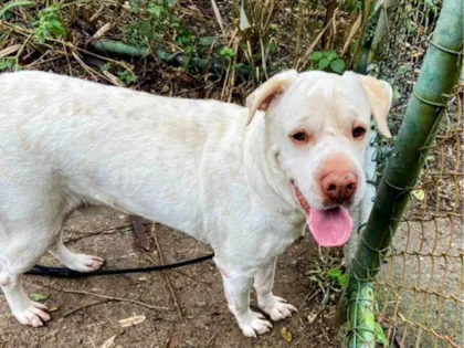 Ghost, mistura de Sharpei e Labrador, está para adoção na Fazenda Modelo. É dócil, carinhoso e se dá bem com coleira. Procura um lar!