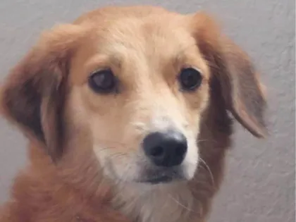 Nalu, linda cadela SRD-Vira-Lata caramelo de 5 anos, é dócil, brincalhona e independente. Ideal para famílias, se adapta bem a visitas e gosta de espaço.