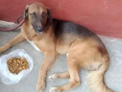 Ele foi encontrado próximo ao um supermercado em Santa Cruz da Serra o senhor que o encontrou e trabalha no mercado é quem está cuidado dele na calçada do