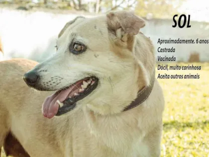 Conheça Sol, uma adorável cadela SRD de 6 anos, castrada e vacinada. Dócil e carinhosa, ela precisa de um lar no Rio de Janeiro. Adote e transforme vidas!