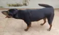 Ele tem aproximadamente 1 ano, é um cão dócil e super tranquilo, porém, por motivo de mudança e o fato de já termos uma fêmea precisamos encontrar o novo lar pra ele por conta do espaço que teremos na outra casa.