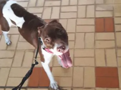 Adote a Vicktória, uma pit-lata de 6 anos que precisa de um novo lar. Após cirurgias, ela procura carinho e proteção. Conheça e faça a diferença!