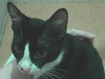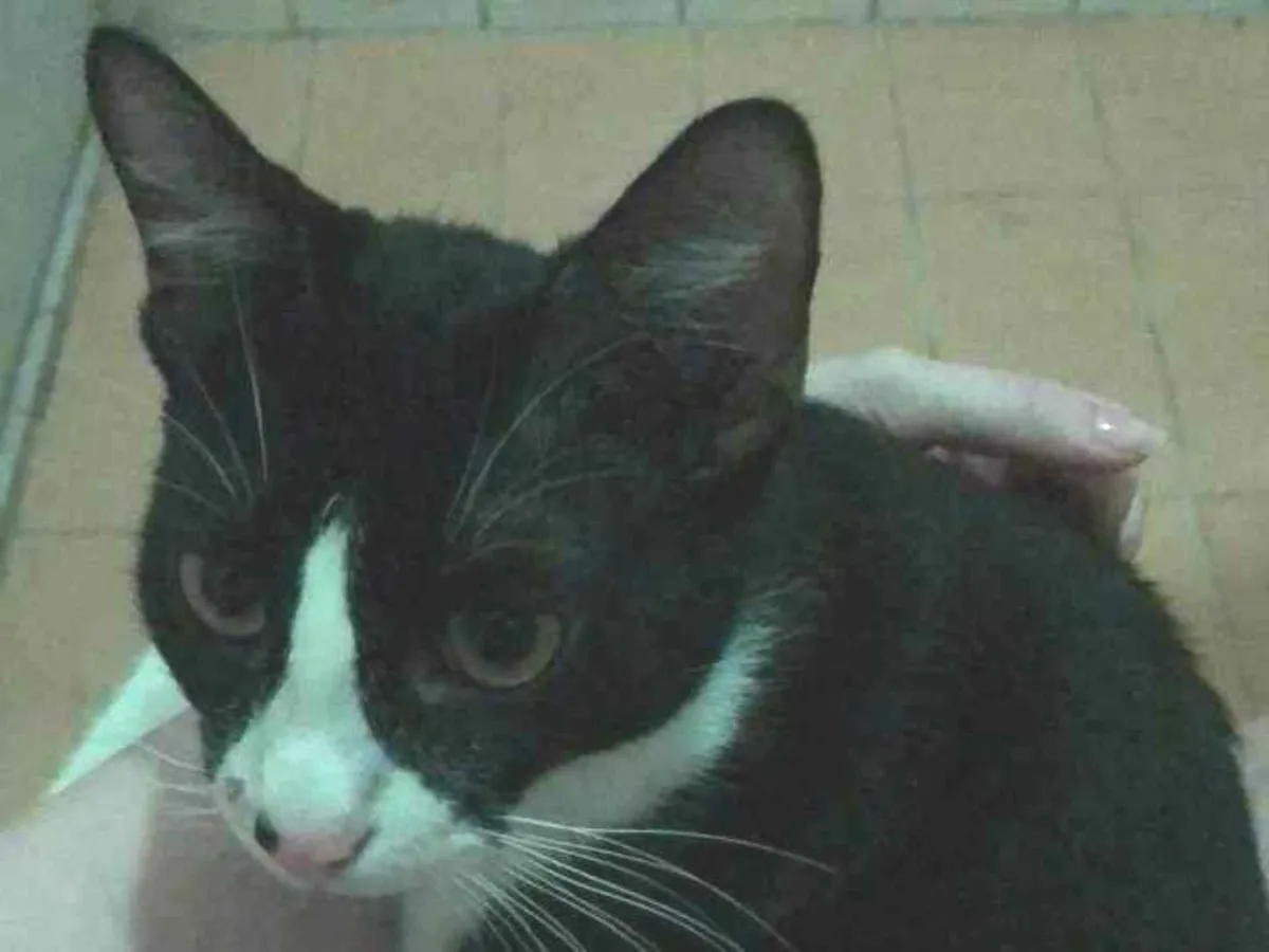 Conheça o Coquinha, um gato SRD de 1 ano, branco e preto, dócil e sociável. Ideal para apartamentos ou casas, ele busca amor e um lar seguro. Adote!