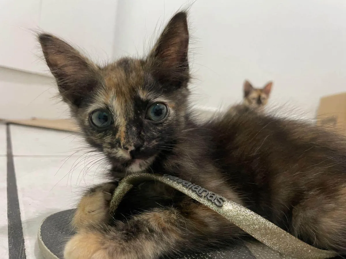 Conheça a Dandara, uma adorável gata SRD de 2 meses, resgatada e cheia de amor para dar. Adote essa fofura e transforme sua vida!