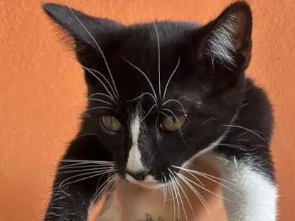 Conheça a Frajola, uma adorável gata SRD de 2 a 6 meses. Dócil, brincalhona e carente, procura um lar com quintal ou apartamento, ideal para crianças.