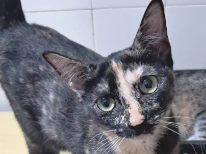 Apresentamos Gigi, uma adorável gatinha da raça SRD (vira-lata) com pelagem escaminha. Com apenas 4 meses e porte pequeno, ela é a companhia perfeita para quem busca amor e alegria em um só olhar.