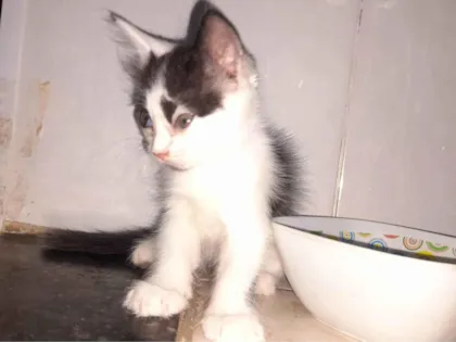 Conheça o João, um adorável gatinho macho da raça SRD (vira-lata), com pelagem branca e preta e menos de 2 meses de pura fofura! Este pequeno não é apenas lindo, mas também um companheiro incrível. Ele já está vermifugado e tem um temperamento dócil e calmo, perfeito para qualquer lar.