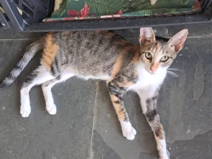 Adote Jolie, uma adorável gatinha tricolor de 3,5 meses. Dócil e brincalhona, ela precisa de um lar seguro, com proteção contra fugas. Seja sua nova família!