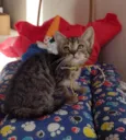 Adote LYA, a tigradinha dócil e carinhosa. Com 50 dias, despulgada e vermifugada, ela já usa a caixinha de areia. Procura um lar seguro e acolhedor.
