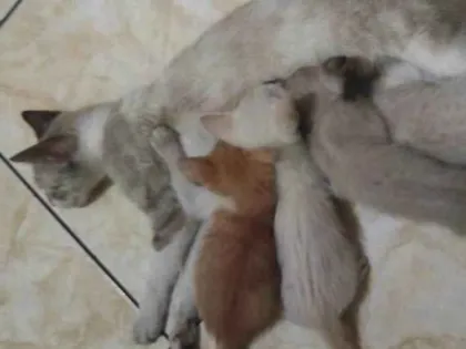 Adote um dos quatro filhotes de gato SRD-ViraLata. Macho, dócil e calmo, precisa de cuidados especiais. Ideal para casas com quintal e crianças. Rio de Janeiro.