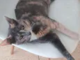 Linda gata fêmea de 6 meses, laranja, cinza e branca. Castrada, vacinada e educada. Procuro um lar definitivo. Ajude a dar um novo lar para ela.